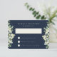 Une carte d'intervention de la marine noire avec des options de présence simples - peut être utilisée pour les mariages et la réception uniquement. Doté d'une élégante bordure de neiges peintes à la main et d'eucalyptus sur le devant et d'une couronne sur le dos de la carte. Tout le texte est entièrement modifiable et les points épars sur le devant et le dos peuvent être supprimés avant de commander si vous le souhaitez. Cette carte est disponible avec des modèles botaniques alternatifs, avec différentes options et dans différentes couleurs. Veuillez consulter la Collection dans mon magasin pour voir toutes les options et les éléments de coordination.
