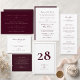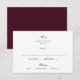 Une carte de réponse officielle pour un mariage, conçue pour se coordonner avec la collection d'invitations de mariage à l'écriture burgundy. Cette élégante carte de réponse présente un devant blanc net, une typographie raffinée de ton burgundy, des accents d'écriture délicats et un dos de couleur vin riche pour une finition sophistiquée et romantique.