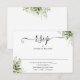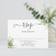 Une simple carte de réponse de mariage avec feuillage vert élégant en noir et blanc avec vos détails dans une typographie chic. Conçue par Thisisnotme©