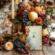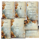 Carte de réponse de mariage élégant avec un joli fond aquarelle marron, bleu et gris avec des vignes dorées. Personnalisez pour créer la carte de réponse parfaite pour votre mariage au vignoble.