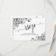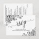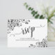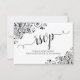 Ces magnifiques cartons de réponse RSVP rendront faciles pour vos invités de répondre à votre invitation de mariage. Ils présentent un design simple mais élégant noir et blanc avec une calligraphie script et des volutes et des fioritures florales en dentelle dans les coins. Le verso de la carte est un formulaire que vos invités doivent remplir et retourner pour indiquer s'ils peuvent ou non être présents, le nombre d'invités qu'ils amènent, et leur choix de repas. Il y a également un espace pour un site web afin que vos invités puissent répondre en ligne si cela leur est plus pratique.