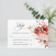Simplifiez votre planification mariage grâce à ces élégantes cartes RSVP qui présentent un design floral intemporel de fleurs rouges pourpres et roses poussiéreuses. Les tons naturels et chauds complètent tous les thèmes mariages classiques, offrant une touche de sophistication à votre papeterie. Faites en sorte qu'il soit facile pour vos invités de répondre tout en ajoutant un look cohésif et élégant à votre suite mariage.