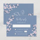 Cette carte de réponse Mariage présente de belles fleurs de cerisier rose poussiéreux sur un arrière - plan bleu. Invitation correspondante disponible.