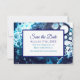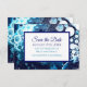 Blue and Sage Green Wedding Enregistrer la carte Date. L'arrière - plan est un bleu et vert marbre fluide numérique pour peindre style art avec de belles cellules.