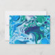 Blue and Sage Green Wedding Enregistrer la carte Date. L'arrière - plan est un bleu et vert marbre fluide numérique pour peindre style art avec de belles cellules.