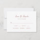 Cette carte de réponse mariage en terre cuite minimaliste moderne comprend un script simple et une disposition élégante avec votre propre choix de repas personnalisé.
