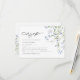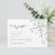 Carte de réponse de mariage floral élégant, avec un arrangement floral délicat de fleurs sauvages bleues et une typographie élégante.