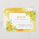Fleurs d'aquarelle jaune et carte RSVP de mariage feuille fleurie boho. Ce design élégant présente un cadre doré et des fleurs d'aquarelle jaune avec des feuilles succulents et eucalyptus sur les coins supérieur droit et inférieur gauche et votre texte en or et noir. Derrière le cadre, il y a un arrière - plan d'aquarelle jaune.
