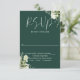 Cette carte de réponse de mariage floral à la verdure émeraude élégante peut être personnalisée avec vos informations en typographie chic. Conçu par Thisisnotme©