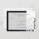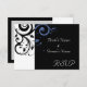 Cartes d'invitation de mariage noir modernes et contemporaines audacieuses et frappantes avec des accents de bleu de bleuet pervenche blanc, avec un fond délicat de feuille en spirale. Personnalisez en ligne avec vos détails de mariage.