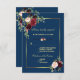 Cartons Réponse Mariage floral bleu marine Bourgogne doré