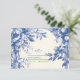 Ajoutez une touche d'élégance intemporelle à votre suite mariage avec la Chinoiserie French Blue Victorian Floral Wedding Card RSVP Card. Cette carte magnifiquement conçue permet à vos invités de répondre facilement à votre invitation tout en complétant la sophistication de votre thème mariage. Dotée d'un design floral complexe d'inspiration chinoise dans des tons bleu français doux, cette carte RSVP capture le charme de l'art victorien avec une touche raffinée et moderne. Son agencement soigné permet aux clients d'indiquer leur fréquentation, leurs préférences en matière de repas ou d'autres réponses, ce qui rend la planification de l'événement transparente. Imprimée sur des cartes de qualité supérieure, cette carte RSVP est conçue pour s'harmoniser parfaitement avec votre suite de faire-part de mariage pour un look poli et cohésif. Caractéristiques principales : Elégante Chinoiserie Design : Délicats motifs floraux dans les tons bleus français classiques. Sophistication inspirée du Victorien : Ajoute une esthétique vintage mais intemporelle. Matériaux de première qualité : Imprimés sur des cartons luxueux et lourds pour un toucher raffiné. Disposition personnalisable : Inclure les options de présence, les sélections de repas ou les notes spéciales. Versatile pour les thèmes : Complète les mariages de style formel, jardin ou vintage. Assurez-vous que vos invités répondent avec style avec cette carte RSVP étonnante, parfaitement conçue pour rendre votre mariage à la fois élégant et sans effort.