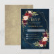 Carte de réponse de mariage géométrique romantique moderne élégant avec une composition de roses en aquarelle burgundy / marsala, rose blush, violettes, pêche avec feuillage assorti sur fond bleu marine. Parfait pour un mariage d'automne / milieu de l'été. Veuillez trouver plus de modèles et de variations assortis dans ma boutique "blissweddingpaperie". Et n'hésitez pas à me contacter pour une personnalisation supplémentaire ou des articles assortis