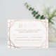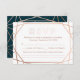 Une carte de réponse aux mariages d'hiver moderne et contemporaine, présente un motif géométrique rose doré "faux papier" sur un arrière - plan turquoise foncé. Tous vos détails sont épelés dans une belle typo moderne. Si vous avez une demande particulière, veuillez m'envoyer un courriel à : margherita@bluebirdinvites.com Nous joindre postage est disponible ici : http://www.zazzle.com/collections/geometric_winter_wedding_set-119231006408651896 Cliquez sur le bouton personnaliser pour accéder aux outils d'édition et modifier la couleur, la typo et bien plus Note ______________________________________________________________________________________________________________________________________________________________________________________________________________ ________________________________________________________________________________________________________________________________________________________________________________________________________________________________________________________________________________________________________________________________________________________________________________________________________________________________________________________________________________________________________________________________
