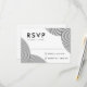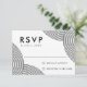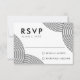 Cartes de réponse mariages modernes avec lignes géométriques tourbillonnantes noires aux coins avec un arrière - plan blanc. Personnalisez les cartes RSVP de mariage noir et blanc en ajoutant votre date RSVP et le libellé personnalisé accepte/décline. Les cartes RSVP boho modernes se retournent pour afficher un arrière - plan blanc solide.