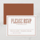 Qui participe ? Laissez vos invités répondre avec cette carte-réponse personnalisable. Elle présente une typographie vintage, parfaite pour tout thème de mariage. Personnalisez-la en ajoutant vos détails d'événement. Cette carte RSVP en terracotta est également disponible dans d'autres couleurs et types de papier.