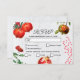 Un beau design avec des fruits de grenade rouge rustique et des feuilles sur un mur de lavage blanc de style méditerranéen. Un mariage botanique élégant mariage grenade RSVP carte de réponse design parfait pour les mariages de style méditerranéen. Des invitations de mariage et d'autres articles de papeterie sont également disponibles.