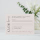 Cette carte RSVP présente un design propre et élégant avec une touche de style boho, parfait pour un mariage moderne. Le texte est imprimé dans un mélange de polices de script de calligraphie simple, moderne et tendance. Le verso de la carte peut être laissé en blanc ou utilisé pour des renseignements supplémentaires, comme les choix de repas ou les détails du site Web du mariage. Cette carte de réponse est une excellente façon d'ajouter une touche de style à vos invitations de mariage. C'est également un choix idéal pour d'autres événements, comme des douches, des fêtes et des diplômes.