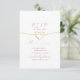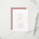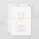 Carte de réponse rose poudrée moderne et minimaliste avec des tons roses élégants et blancs, présentant un détail de cœur de corde dorée romantique. Comprend des sections pour la réponse de l'invité, les préférences de repas (végétarien, sans gluten, végane) et le nombre de participants. Un design chic et intemporel pour correspondre aux thèmes de mariage rose poudré et or. Parfait pour les mariages élégants avec des détails simples et sincères.
