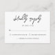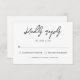 Cette carte RSVP présente un design élégant et moderne avec un script audacieux et contemporain. La mise en page simple avec des cases à cocher et une ligne désignée pour le nombre d'invités assure des réponses cristallines de vos invités. Cette carte de réponse est parfaite pour les couples qui privilégient une esthétique propre et un processus RSVP efficace.