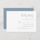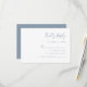 Cette simple carte de boîtier RSVP mariage moderne présente du texte bleu poussiéreux sur un arrière - plan blanc. Le titre apparaît dans la calligraphie stylisée d'écriture manuscrite. Customisez le texte restant dans la police sans serif. L'envers est bleu poussiéreux et solide.