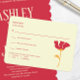 Ajoutez une touche vibrante à votre suite mariage avec cette carte RSVP moderne avec une typographie audacieuse et un mélange amusant d'orange et de rouge. Conçu pour les couples qui aiment les lignes épurées et le style contemporain, cette carte est à la fois attrayante et fonctionnelle. C’est une façon amusante et mémorable pour les clients de répondre à votre grande journée.