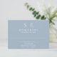 Cette chic carte rsvp de mariage bleu et or poussiéreux peut être personnalisée avec vos initiales monogrammes et l'information de l'événement. Conçu par Thisisnotme©