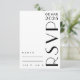 Cette carte de style art déco fera de votre mariage un souvenir impérissable ! Avec un grand cap Art Déco vertical, avec espace pour le nom des invités, et qu'il s'agisse d'un oui ou d'un non. Sur le dos se trouve un monogramme moderne, et un espace pour l'invité pour écrire leurs exigences spéciales : médical, diététique ou autre. Parcourez mon magasin pour trouver des enveloppes et des articles de papeterie correspondants. ・ ・ ・ Pour plus de suites mariages, visitez ma boutique Zazzle.com/EventsByJessicaAmber ・ ・ Pour les commandes sur mesure, envoyez-moi un message sur Zazzle