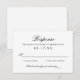 Complétez votre suite avec cette carte de réponse de mariage qui présente une typographie élégante « Réponse » et une mise en page noire et blanche épurée. Comprend un espace pour le nom de l'invité, la sélection de présence et une ligne de comptage des invités pratique. Minimaliste, intemporel et parfait pour les mariages classiques formels, traditionnels ou modernes.