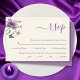 Carte de réponse RSVP de mariage fleuri à ressort fleuri violet. Il craint les fleurs d'anémones violettes de style vintage avec des feuilles et un papillon volant sur arrière - plan blanc cassé. Le texte "RSVP" est dans une police de calligraphie de script.