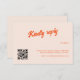 Nous vous présentons notre carte de réponse de mariage amusante aux couleurs pêche et mandarine avec un code QR, conçue pour ajouter une touche de charme rétro à votre jour spécial. Le fond de couleur pêche douce est parfaitement complété par la calligraphie rétro mandarine vibrante qui ajoute une touche de couleur et de sophistication. Le texte est entièrement personnalisable.