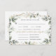 La conception présente des feuillages et des branches de greenery aérés à l'aquarelle dans diverses nuances de vert avec des éléments de feuilles imprimés en or. Le dos présente des branches assorties sur un cadre géométrique doré. Cette conception propose 3 (trois) choix de repas. Le buffet et 2 (deux) choix de repas sont également disponibles. Consultez le lien de la collection sur cette page pour trouver ces articles et les produits assortis de ce design.