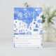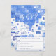 Parfait pour votre mariage de rêve sur l'étonnante île grecque de Santorin. Doté d'une aquarelle originale de Nic Squirrell de la ville pittoresque d'Oia dans un schéma classique de couleurs bleu et blanc, capturant l'essence de cette île à couper le souffle. Que vous planifiez une cérémonie intime ou une grande fête, cette carte RSVP sur le thème de Santorin apportera une touche de sophistication et d'élégance à votre journée spéciale. Modifiez le texte pour customiser.