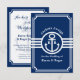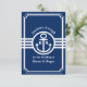 Élégantes invitations sur le thème nautique bleu et blanc avec des textes facilement personnalisables. La couleur de fond bleu et les couleurs du texte sont personnalisables.