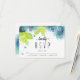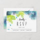 Fleurs éthérées bleues et turquoises carte RSVP de mariage printanier fleurie. La partie supérieure est couverte d'un bouquet de fleurs bleues aux feuilles verts.