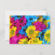 Cette carte de réponse RSVP de mariage vibrante et colorée présente des fleurs de marguerite rose chaud, bleu turquoise et jaune gerber. Voici la faire-part de mariage correspondante :