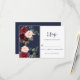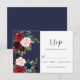 Carte de réponse moderne propre et simple. Arrière - plan personnalisable en bleu marine avec des fleurs bordeaux et bleu marine. Peut être customisé pour n'importe quelle occasion, les couleurs du texte et les couleurs arrière - plans changées pour correspondre à votre occasion.