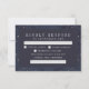 Les cartes RSVP marines célestes et de mariage d'or modernes et uniques sont l'ajout parfait à tout écrit dans le mariage à thème des étoiles. Ces cartes offrent un design de nuit minimaliste qui s'adaptera parfaitement à vos invitations et autres fournitures de mariage.
