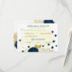 Fleurs bleu marine et blanc romantique avec mariage botanique feuille or réponse carte rsvp avec choix de repas. Les détails de la parties scintillant sont simulés.