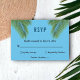 Cette élégante carte RSVP de mariage de plage est parfaite pour un mariage balnéaire moderne. Le design romantique présente des feuilles de palmiers verts avec une élégante typographie noire sur un arrière - plan turquoise.