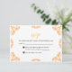 This Mexican Talavera Yellow Floral Minimalist Wedding RSVP Card design features a minimalist approach with delicate, symmetrical orange yellow motifs placed in each corner and along the edges. The small, leaf-like shapes create a sense of movement while maintaining an airy, open space in the center, allowing for ample text placement. The simplicity and elegance of the pattern evoke traditional Talavera tiles, giving the design a classic Mexican artisanal feel.