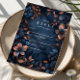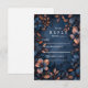 An enchanting deep-navy wedding design wrapped in glowing copper florals and delicate botanical detailing. This immersive, moody palette creates a romantic twilight atmosphere, perfect for elegant evening weddings or couples who love rich, dramatic aesthetics. The ornate frame draws the eye to your names and details, giving the entire piece a luxurious, storybook feel. A sophisticated choice for modern romantics who want their celebration to feel timeless and striking.