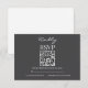 Simplify your wedding guest list management with this Modern Charcoal Gray Wedding RSVP Card. Featuring a sleek white-on-gray design, this card includes a prominent QR code for quick, paperless responses alongside traditional "Joyfully Accepts" and "Regretfully Declines" options. The sophisticated mix of script and serif typography makes it a perfect fit for contemporary, urban, or black-tie weddings. Give your guests the convenience of a digital reply without sacrificing the timeless look of a physical stationery suite.
