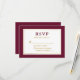 Elégant minimaliste moderne Bourgogne et blanc mariage carte RSVP. Cadre Or.