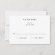 La carte RSVP minimaliste classique moderne et élégante présente un design moderne en noir et blanc. Utilisation pour les mariages classiques classiques élégants et modernes minimalistes informels. Personnalisez et imprimez dès aujourd'hui. Éléments correspondants disponibles.