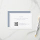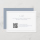 Carte RSVP de mariage simple avec un design moderne et élégant avec votre monogramme à deux lettres et votre code QR personnalisé entouré d'une mince bordure. Tout le texte est bleu poussiéreux sur un arrière - plan blanc et peut être changé en n'importe quelle couleur que vous désirez en cliquant sur le bouton "personnaliser". Une carte de réponse Mariage chic et élégante qui s'adapte à tous les styles de suite de faire-part de mariage.