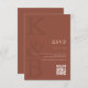 Créez vos propres cartes RSVP de mariage personnalisées avec typographie monographique moderne et design graphique minimaliste en couleur terre cuite.