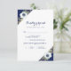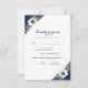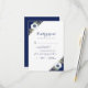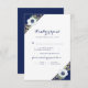 White anemone flowers with golden twigs and leaves forming a beautiful frame. (L'or n'est pas réel, but printed.) Navy blue background. Bride's and Groom's monograms with golden leaves. Sleek et design moderne.