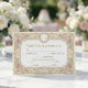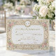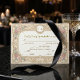 Définissez le ton pour une célébration intemporelle avec ce design d'inspiration vintage. Parfait pour demander le plaisir de la compagnie de vos invités lors d'une réception formelle. Ce design présente un fond chaud de couleur crème superposé d'une texture de papier antique imprimé pour évoquer un sentiment d'histoire. La mise en page est encadrée par une bordure symétrique de roses roses douces et de feuilles vert sauge, entrelacées de volutes en filigrane doré faux. Un délicat dessin au trait d'un chérubin repose en bas au centre, tandis qu'un cadre ovale en haut met en valeur des initiales personnalisées. La typographie mélange une police serif traditionnelle avec une écriture cursive élégante pour une finition raffinée. Il s'agit d'une image imprimée plate avec un effet de feuille d'or faux et de parchemin, et non d'un matériau ou d'un métal en