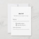 Présentant notre Mini Élégant Monogrammes Botaniques Floraux Wreath RSVP Card, un mélange exquis d'éléments de design classique et moderne. Cette carte RSVP présente une couronne florale dessinée à la main, présentant délicatement des fleurs minimales et des lignes d'art minimalistes. L'écriture élégante ajoute une touche romantique à l'esthétique globale. La couronne botanique, soigneusement travaillée, s'inspire de la beauté de la nature, dégageant une élégance intemporelle à la fois tendance et sophistiquée. Son style minimaliste permet aux détails complexes et aux courbes gracieuses des fleurs de briller, créant un affichage visuel étonnant. Cette carte RSVP est parfaite pour ceux qui recherchent une suite d'invitation chic et raffinée qui feuille une impression durable. Son design minimaliste complétera tous les thèmes ou célébrations mariages, des affaires de jardin fantaisistes aux cérémonies formelles élégantes. Chaque détail a été soigneusement étudié, du choix des matériaux de première qualité à la technique d'impression de haute qualité utilisée. Le résultat est une carte RSVP luxueuse et visuellement saisissante qui capture sans effort l'essence de l'élégance minimaliste. Préparez-vous à impressionner vos invités avec cette Minuscule carte RSVP de Monogrammes Botaniques Floraux, l'épitome de la grâce et de la beauté. Commandez le vôtre aujourd'hui et laissez le charme et le charme de ce design enchanteur donner le ton pour votre occasion spéciale.